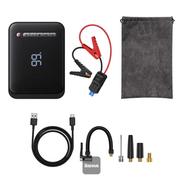 جامپاستارتر باسئوس مدل Super Energy 1000A یک دستگاه همهکاره شامل جامپاستارتر خودرو و کمپرسور باد اضطراری است. این محصول با جریان اوج ۱۰۰۰ آمپر میتواند خودروهای ۱۲ ولتی بنزینی تا ۴.۰ لیتر و گازوئیلی تا ۲.۵ لیتر را سریع روشن کند. ۱۰۰۰A نشاندهنده توان بالای استارت آن است. با قابلیت Zero-Voltage Switching جامپ استارتر و پمپ باد بیسوس Super Energy 1000A حتی در صورت کاملاً خالی بودن باتری نیز توانایی استارتزنی دارد. این ویژگیها در کنار عملکرد چندگانه جامپاستارتر، پمپ باد، پاوربانک و چراغ اضطراری باعث میشود Super Energy بیسوس برای شرایط اضطراری و سفرهای جادهای بسیار مناسب باشد.