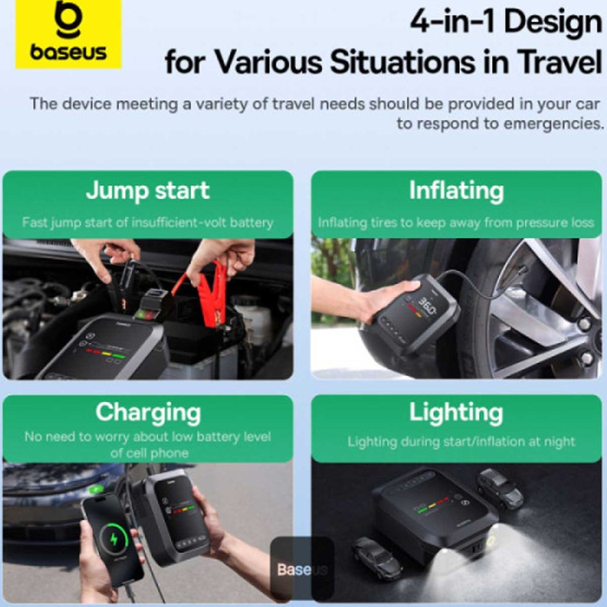 جامپ استارتر و پمپ باد 4 کاره Baseus + پاوربانک 30000 Baseus PrimeTrip BS-CH014 C00245903111 با چراغ قوه