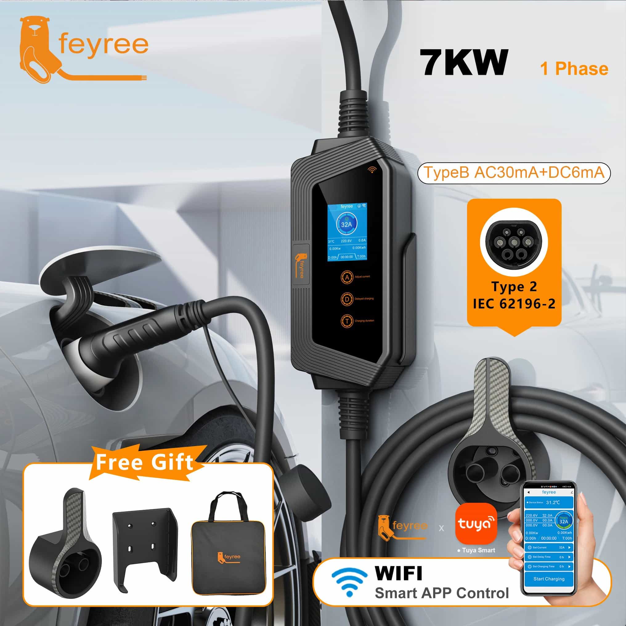 - شارژر پرتابل خودروی برقی برند Feyree مدل Hero EV-K8، سبک و کمحجم، با قابلیت حمل آسان در صندوق عقب خودروی الکتریکی، مناسب شارژ خودرو هنگام سفر یا سایر مواقعی که شارژرهای ثابت (خانگی یا ایستگاهی) در دسترس نبوده و نیاز به شارژ اضطراری خودروی برقی وجود دارد.